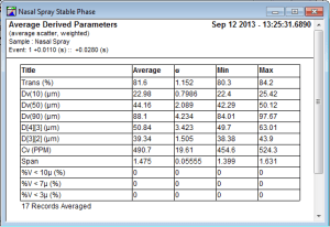 The interpretation of data from sprays is as critical as the measurement itself. With years of experience in the laboratory, we offer testing and expertise to ensure the results we provide are accurate and most indicative of the performance of the spray product. By using the full capability of the Malvern Spraytec, we can properly identify spray formation, stability and dissipation of short cycle sprays while identifying long term trends and life cycle of products.